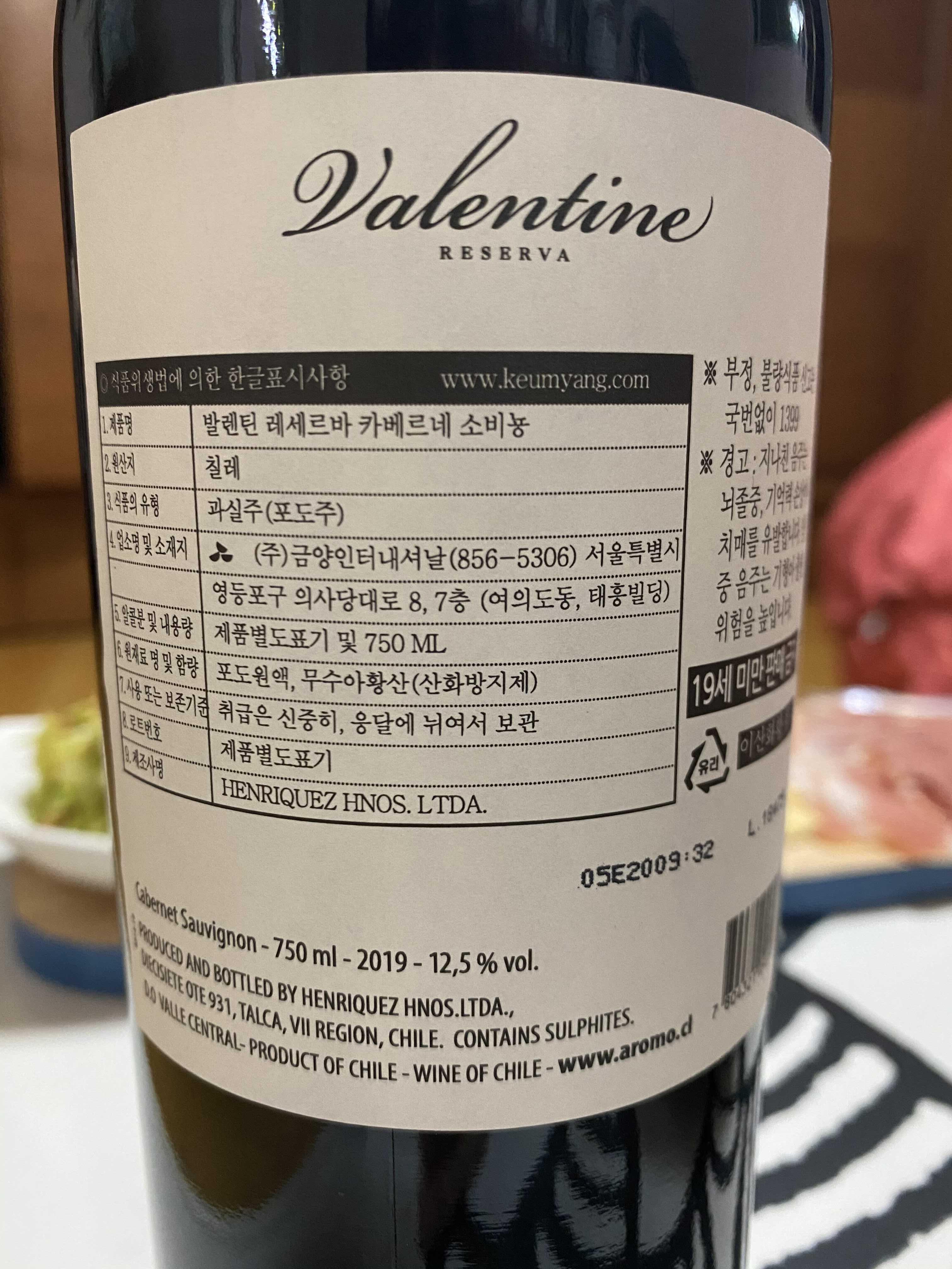 이 날 함께 한 와인은 카베르네 소비뇽입니다.